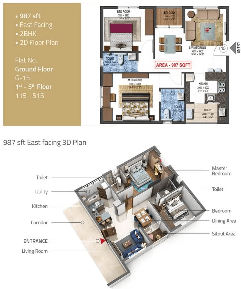 | 2 BHK | 987 - 1237 Sqft | N/A | ₹ 45 - 55 Lacs |