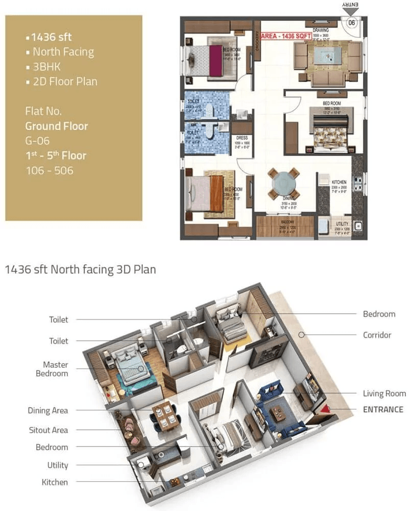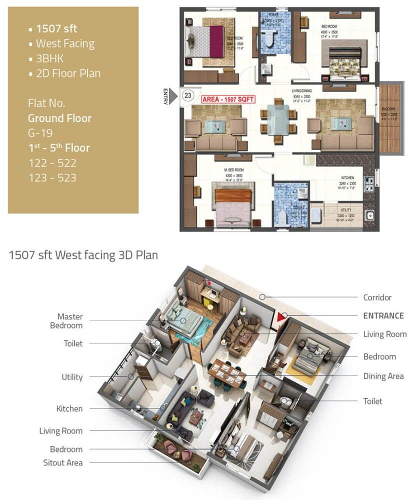 | 3 BHK | 1436 - 1978 Sqft | N/A | ₹ 63 - 85 Lacs |