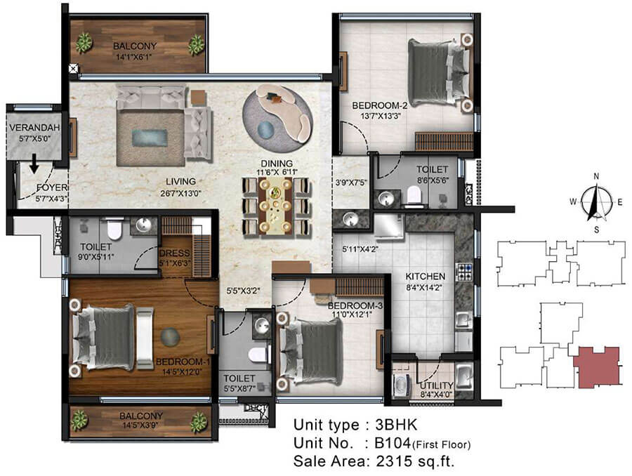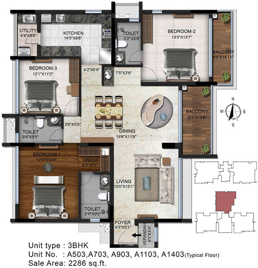 | 3 BHK | 2167 - 2320 Sqft | N/A | ₹ 3.19 - 3.41 Cr |