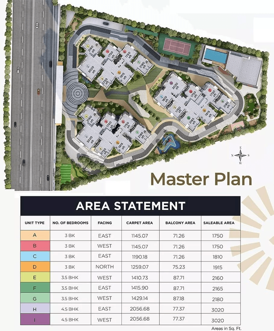 | 3.5 BHK | 2160 - 2180 Sqft | N/A | ₹ 1.68 - 1.70 Cr |