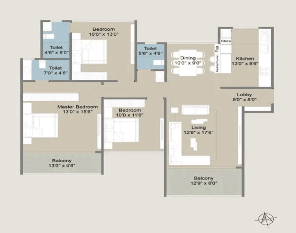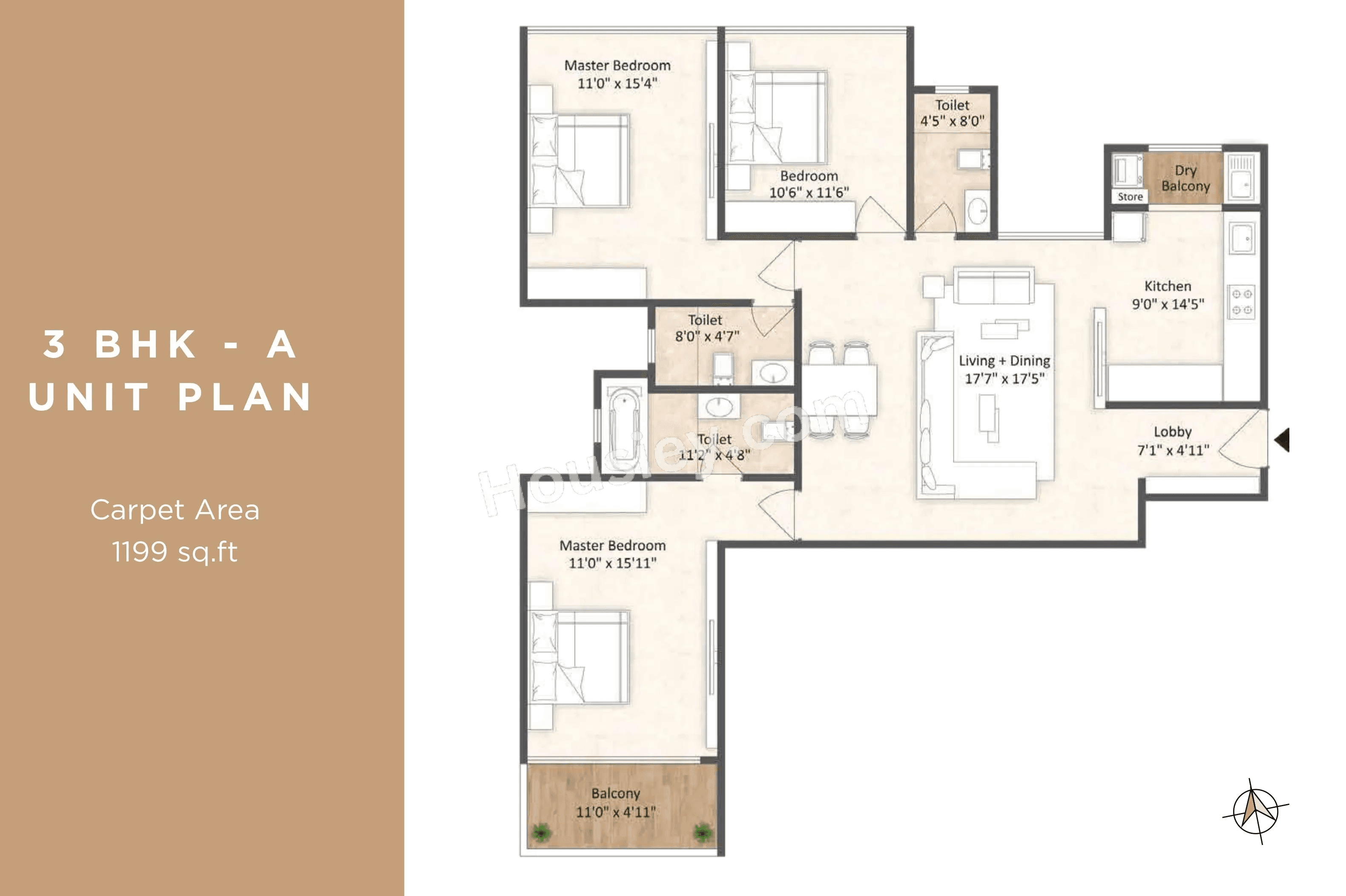 | 3 BHK | 1199 - 1230 Sqft | 1199 - 1230 Sqft | ₹ 1.59 Cr |