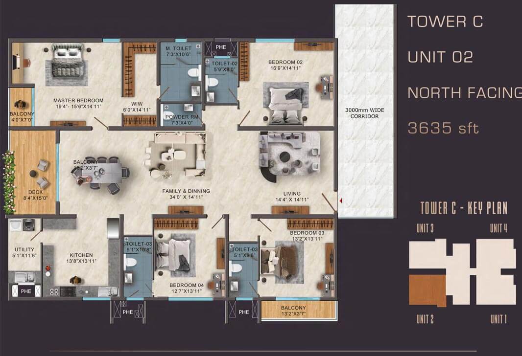 | 4 BHK | 3635 - 4080 Sqft | N/A | ₹ 3.46 - 3.87 Cr |
