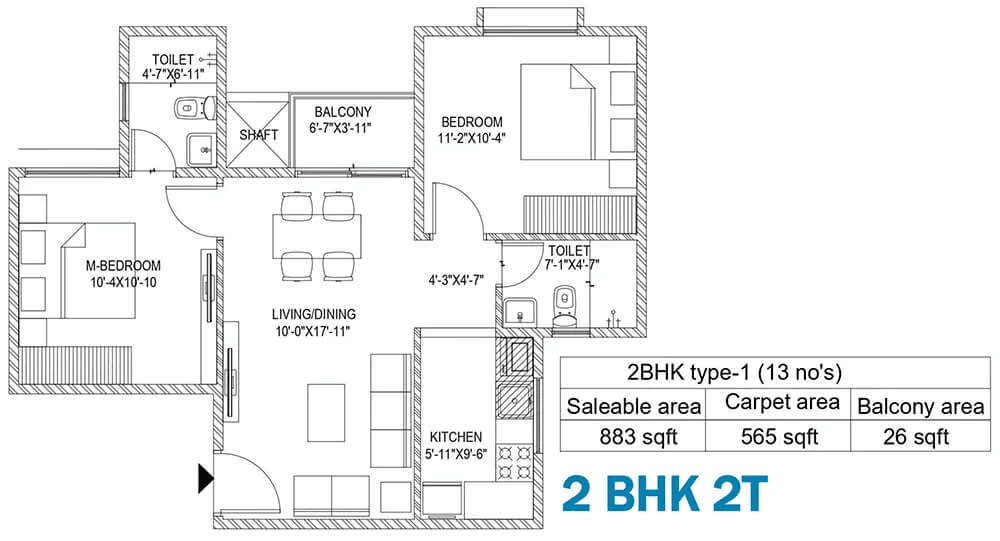 | Unit Type | Saleable Area | RERA Carpet Area | Price |