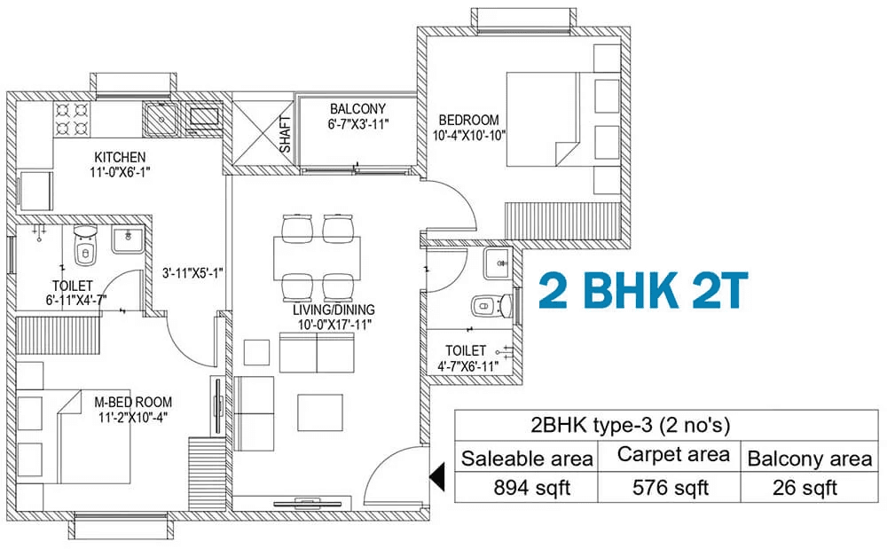 | 2 BHK | 848 - 894 Sqft | N/A | ₹ 71.1 - 74.6 Lacs |