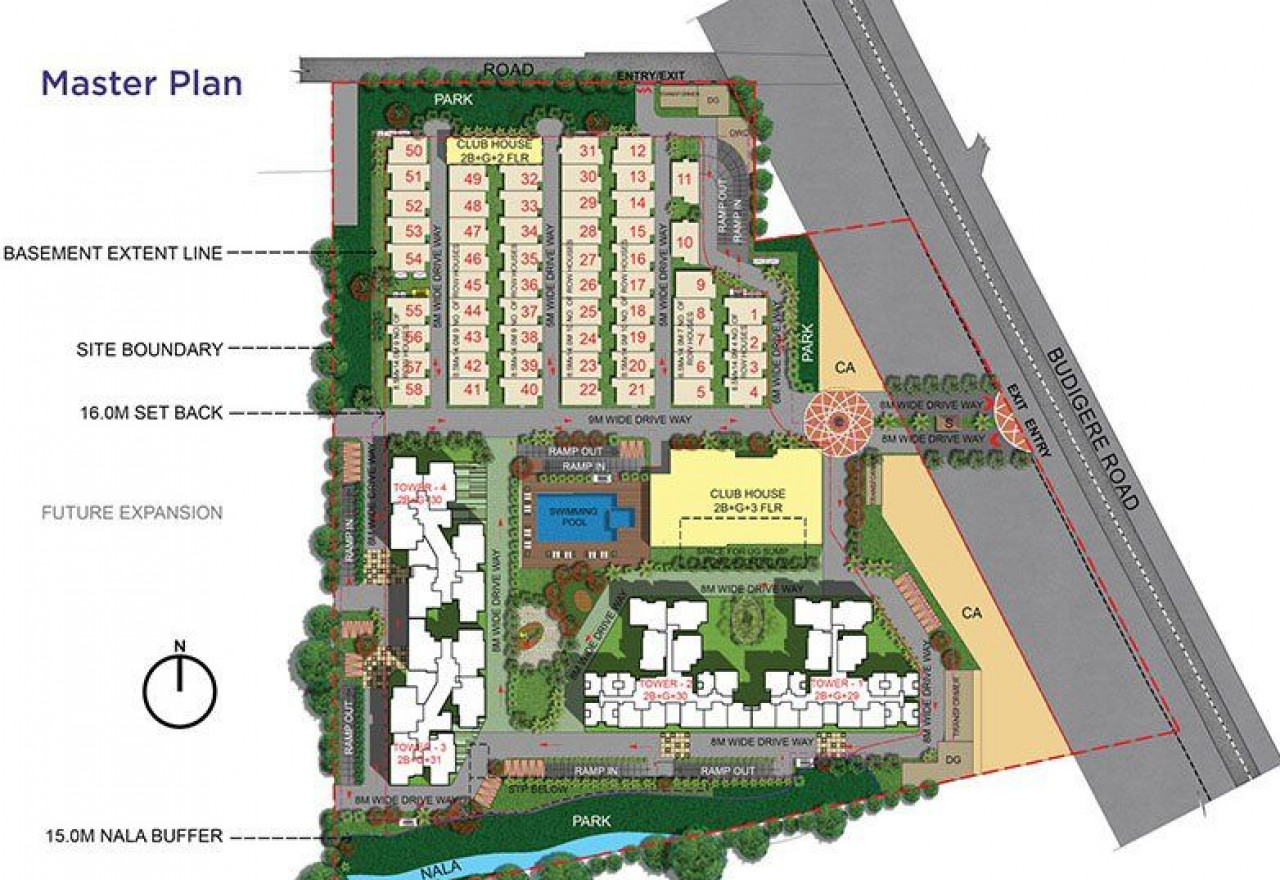 Sattva Songbird Location has excellent connectivity & it is located at the crux of Budigere Cross just off Old Madras Road, KR Puram, and Whitefield near existing landmarks like Sattva Bliss, Godrej Woodscapes, Prestige Tranquility, Brigade Buena Vista, Shriram Greenfield, and upcoming communities & facilities.