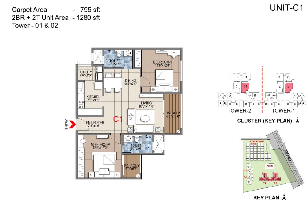 | 2 BHK | 1268 - 1280 Sqft | N/A | ₹ 1.65 - 1.66 Cr |