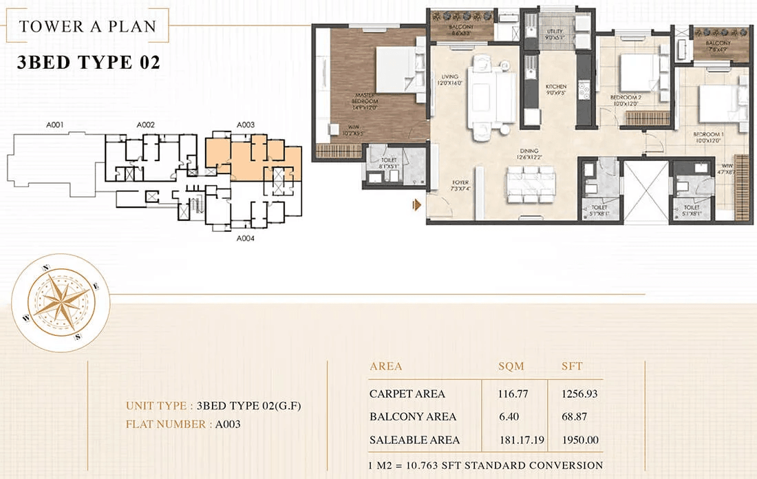 | 3 BHK | 1940 - 1950 Sqft | N/A | ₹ 2.8 - 2.81 Cr |