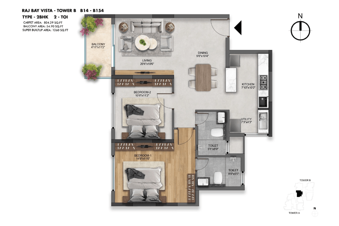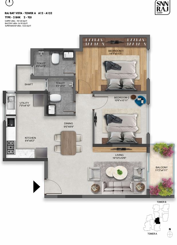 | 2 BHK | 1235 - 1320 Sqft | N/A | ₹ 1.37 - 1.53 Cr |