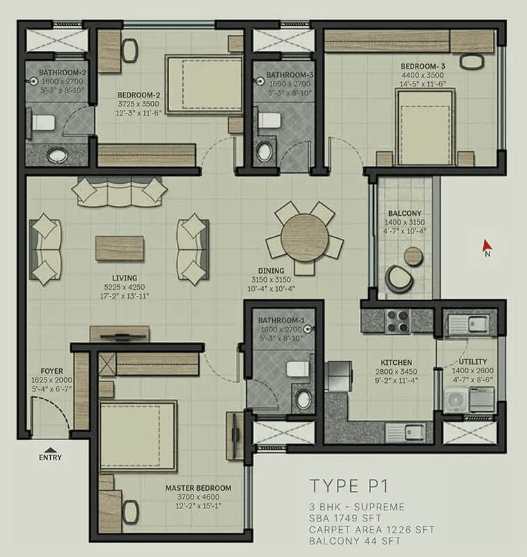 | 3 BHK | 1539 - 1826 Sqft | N/A | ₹ 1.32 - 1.57 Cr |