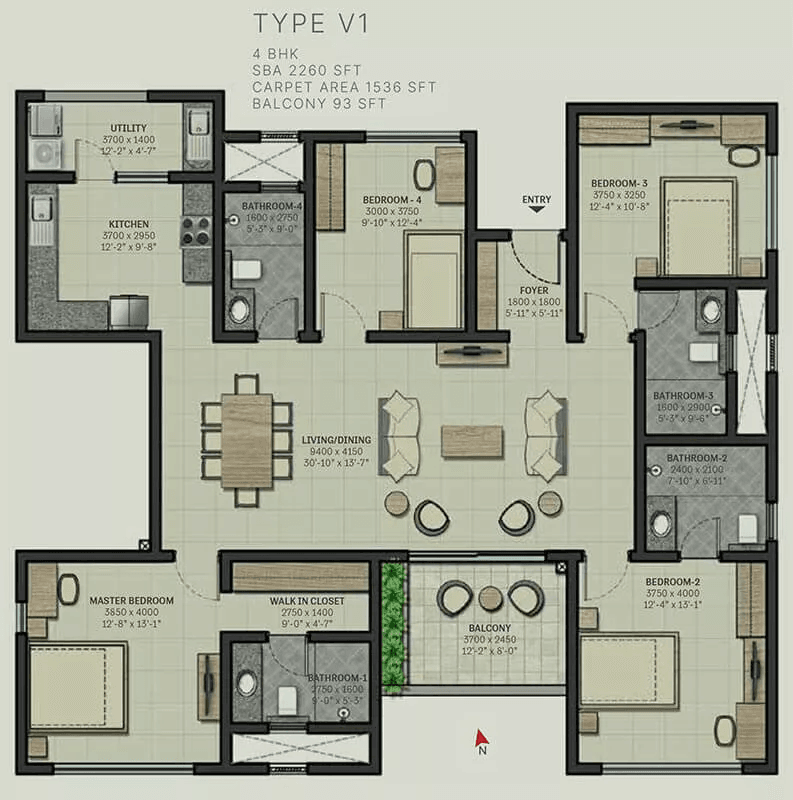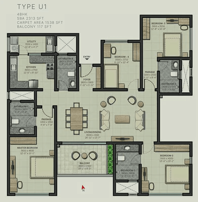 | 4 BHK | 2230 - 2313 Sqft | N/A | ₹ 1.92 - 1.99 Cr |