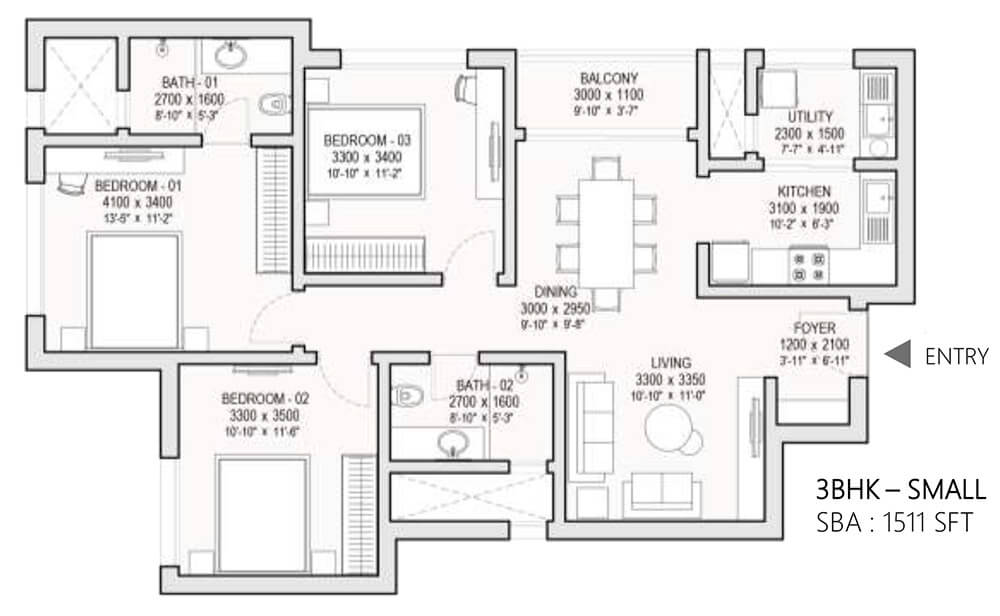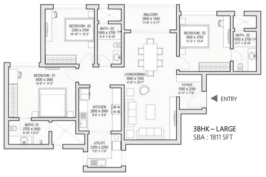 3 BHK 1525 - 1825 Sqft N/A ₹ 2.25 - 2.94 Cr