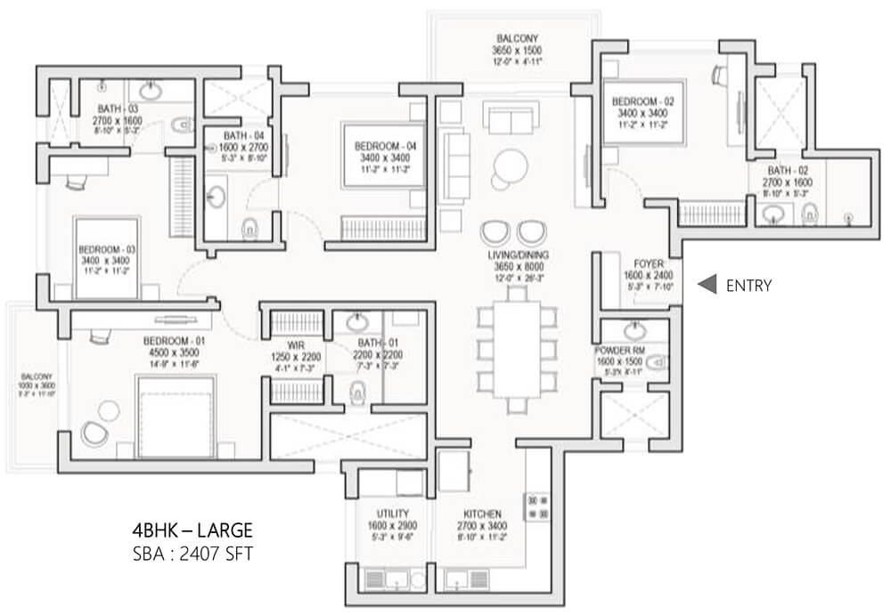 4 BHK 2100 - 2425 Sqft N/A ₹ 3.14 - 3.9 Cr