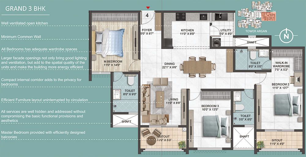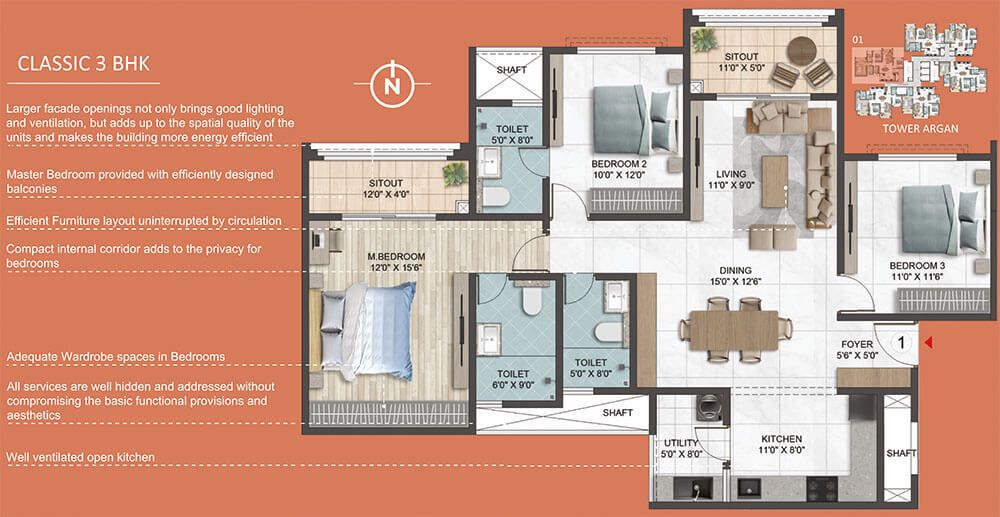 DG backup: 4BHK Grand/4BHK smart – 1.5Kw, 3BHK Classic/3BHK Smart – 1Kw.