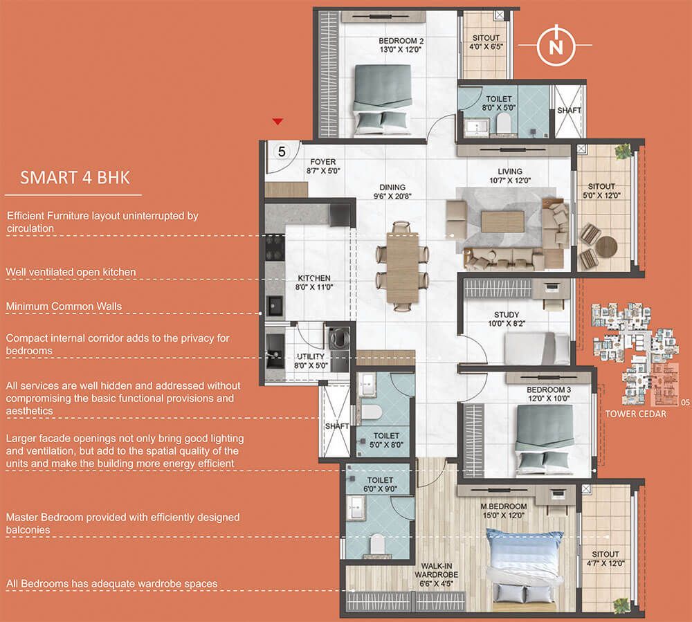 Some of the Amenities at Sumadhura Epitome include a fully equipped clubhouse, landscaped gardens, gymnasium, swimming pool, recreation rooms, outdoor sports courts, children’s play area, party hall, and meticulously planned with utmost importance to state-of-the-art 24/7 securities.