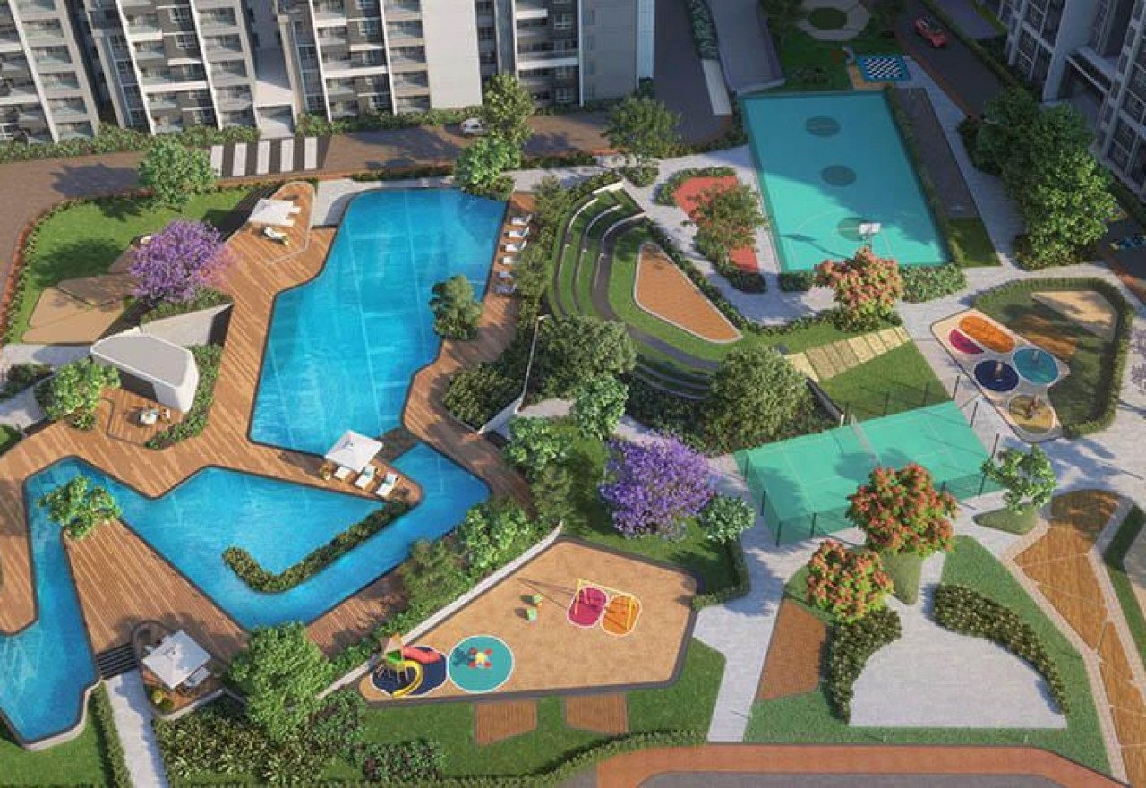 Amenities at Sumadhura Folium Phase 2 include a fully equipped clubhouse, landscaped gardens, gymnasium, swimming pool, recreation rooms, outdoor sports courts, children’s play area, and party hall, and meticulously planned with utmost importance to state-of-the-art 24/7 security.