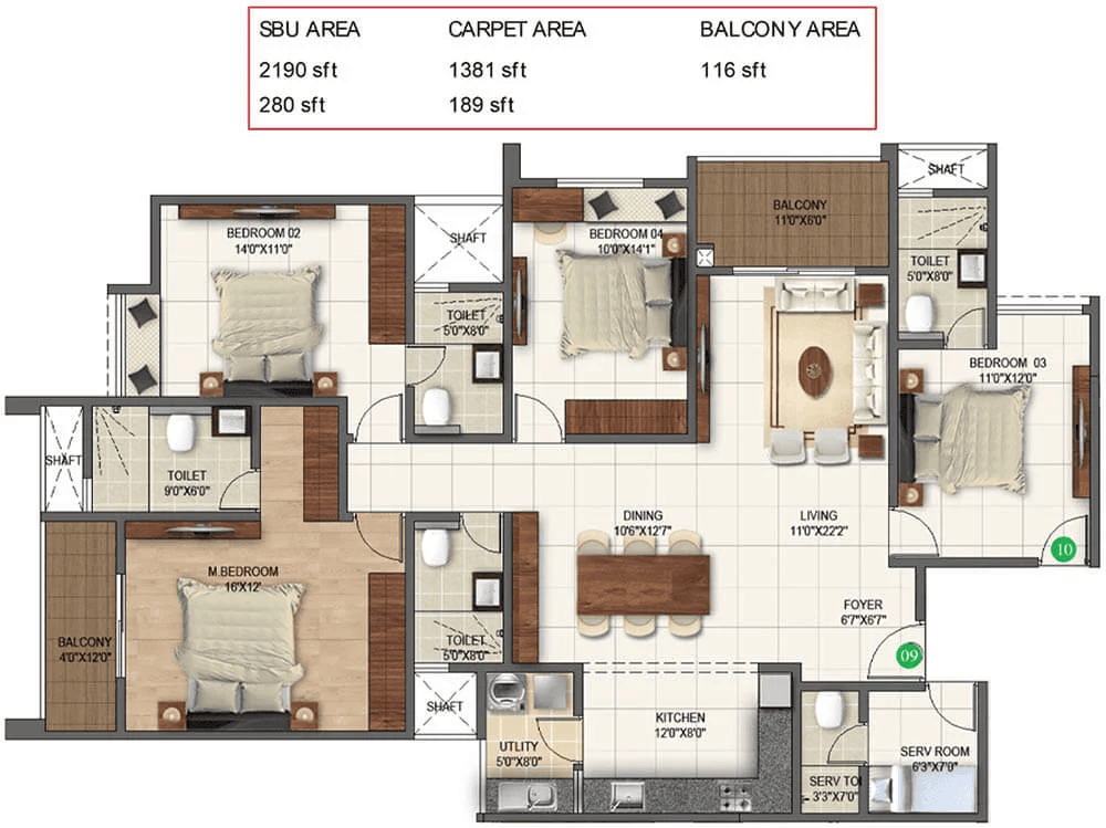 | 4BHK | 1890 - 2630 Sqft | N/A | ₹ 2.7 - 3.76 Cr |