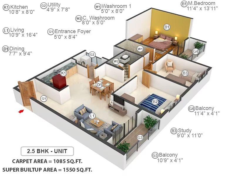DG backup: 4BHK Grand/4BHK smart – 1.5Kw, 3BHK Classic/3BHK Smart – 1Kw.
