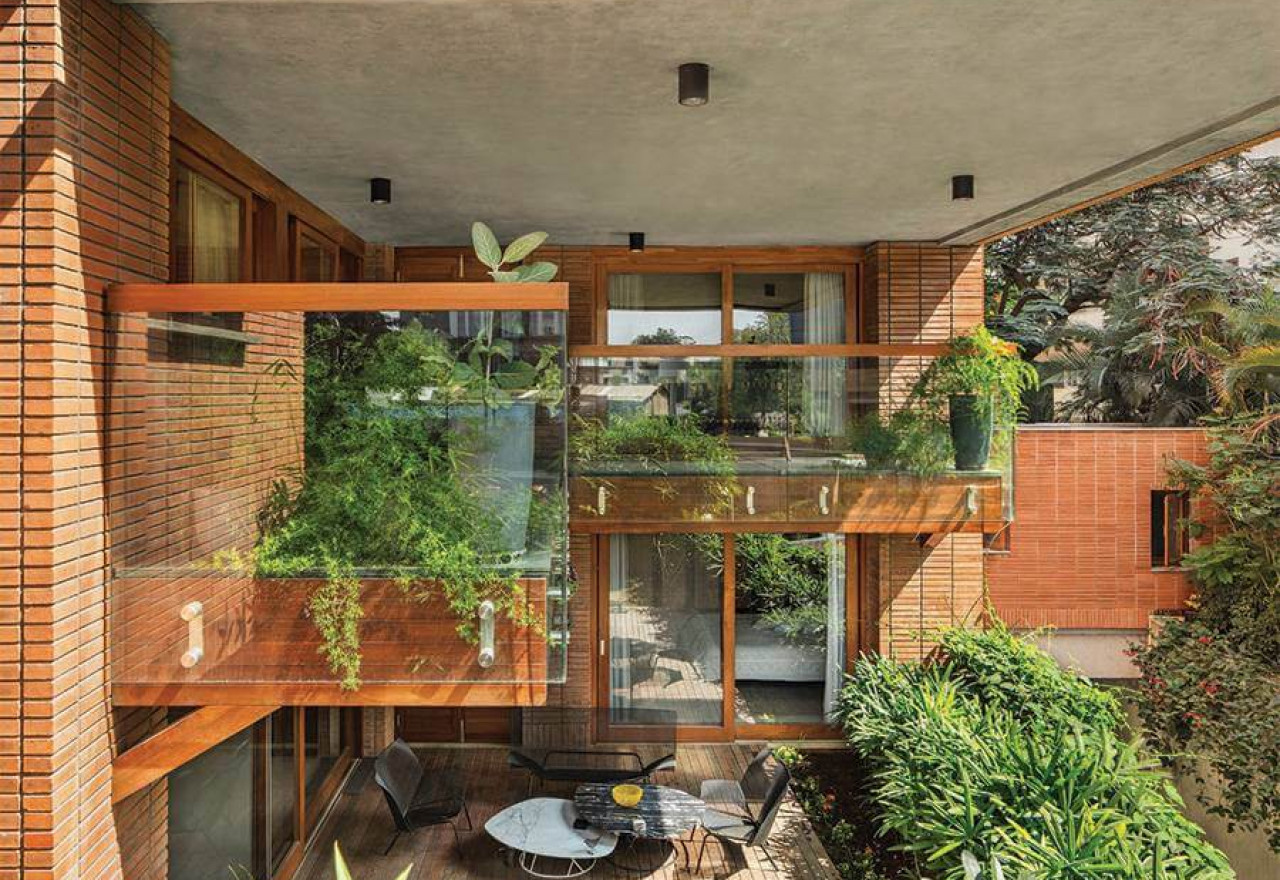 High quality exposed brick masonry using specially procured high-strength terracotta wire-cut bricks / stone masonry.