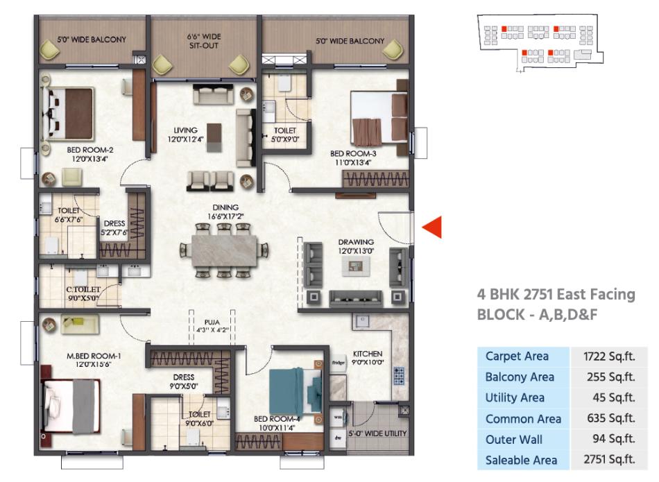 | 4 BHK | 2751 Sqft | N/A | ₹ 2.22 Cr |