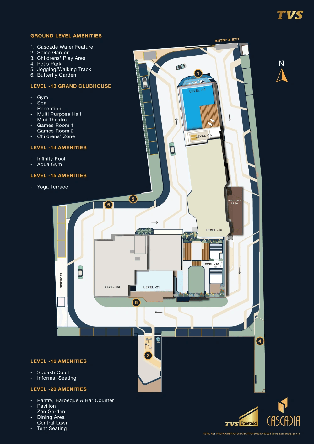 This property offers a range of luxurious amenities tailored to enhance your living experience. Residents can enjoy a refreshing swim in the pool, stay active in the state-of-the-art gym, or unwind in the landscaped gardens. The children’s play area ensures the little ones have their own space for recreation. TVS Emerald Cascadia provides spaces for social gatherings and relaxation, ensuring every resident’s lifestyle is both enriching and fulfilling.