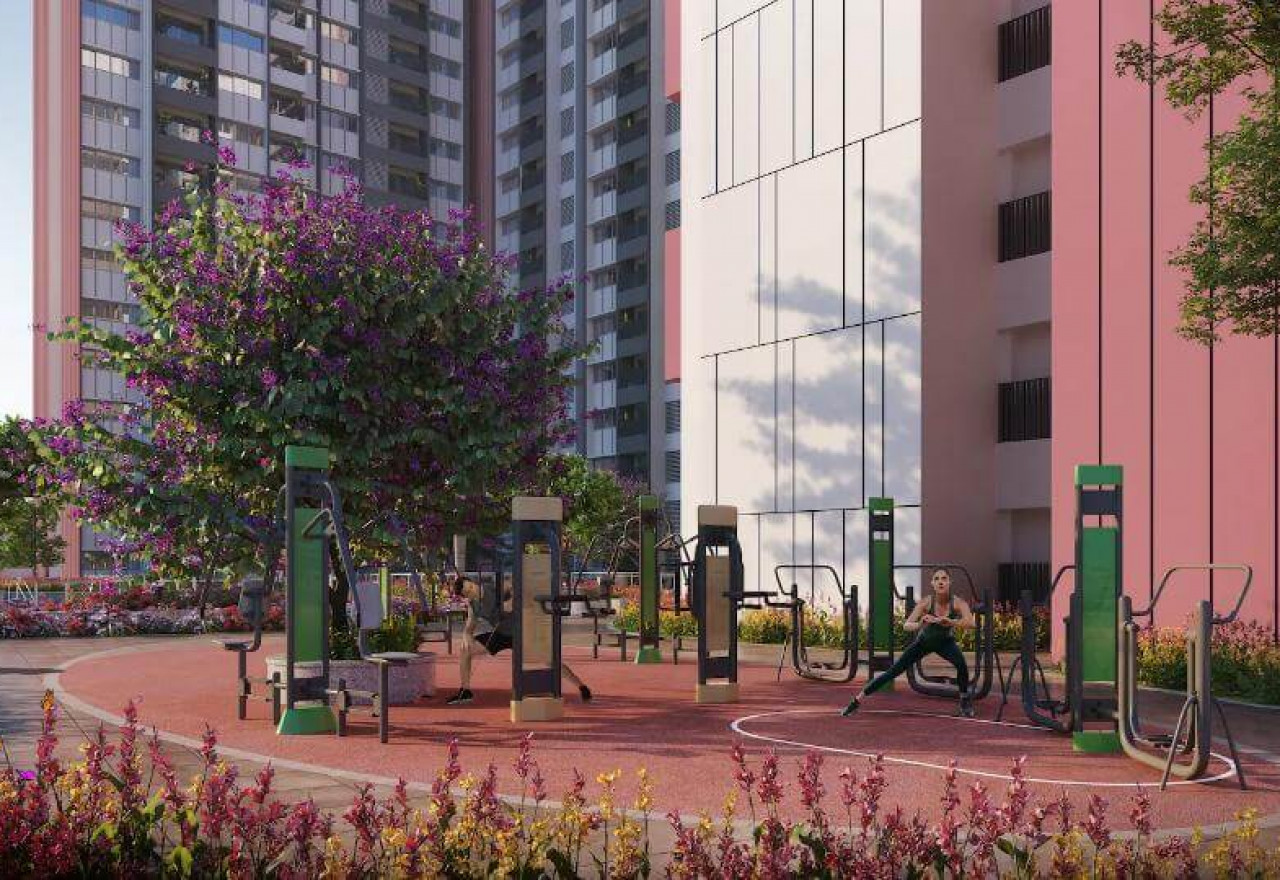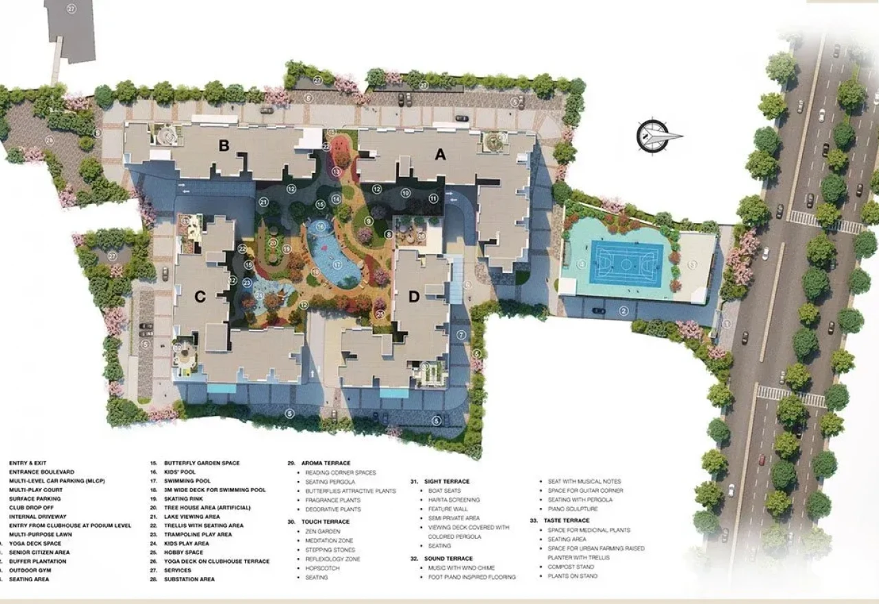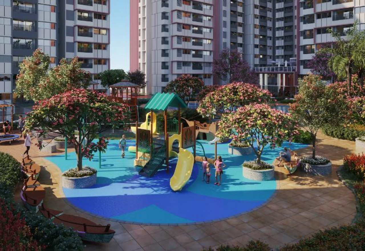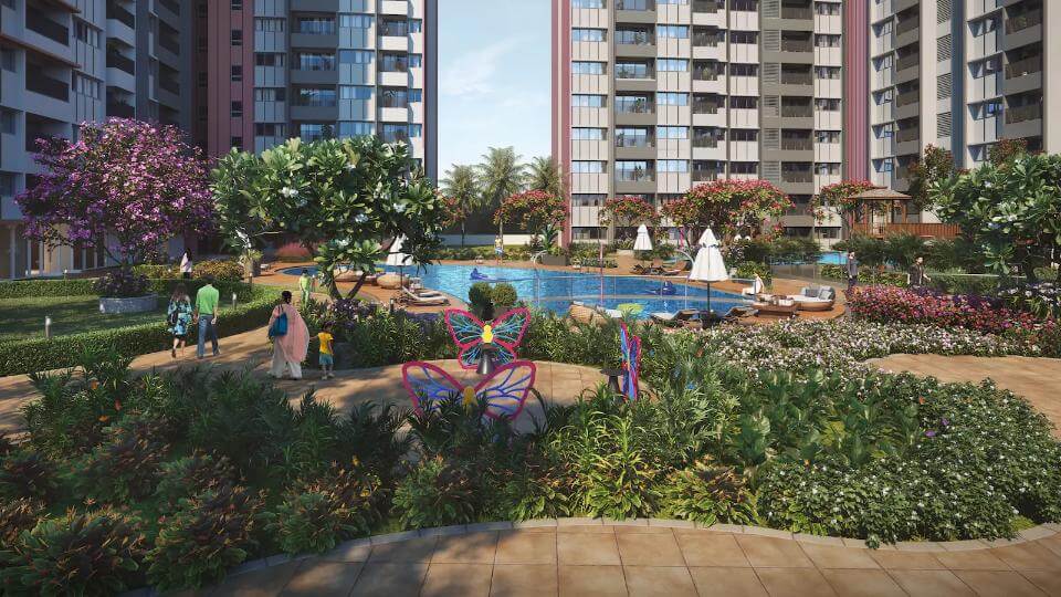 Some of the 50+ Amenities at TVS Emerald Elements include a fully equipped clubhouse, landscaped gardens, gymnasium, swimming pool, recreation rooms, indoor gaming area, health centers, outdoor sports courts, children’s play area, 5 themed Terraces, party hall, and meticulously planned with utmost importance to state-of-the-art 24/7 securities.