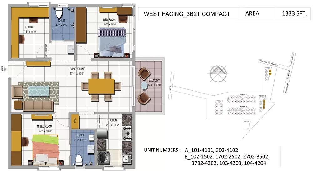 | 2.5 BHK | 1333 Sqft | N/A | ₹ 1.10 Cr |