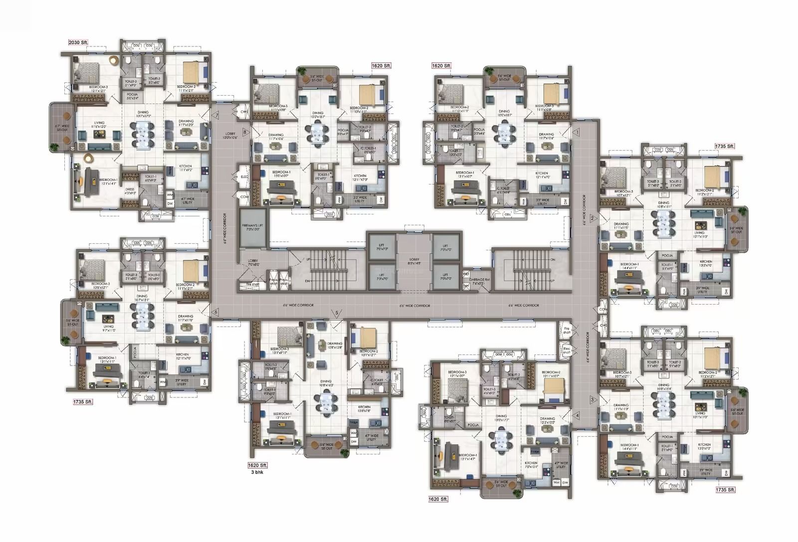 DG backup: 4BHK Grand/4BHK smart – 1.5Kw, 3BHK Classic/3BHK Smart – 1Kw.